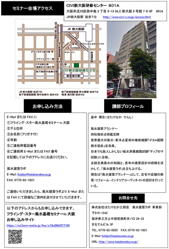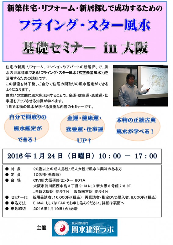 【新築住宅・リフォーム・新居探しで成功するための フライングスター風水基礎セミナーin東京】