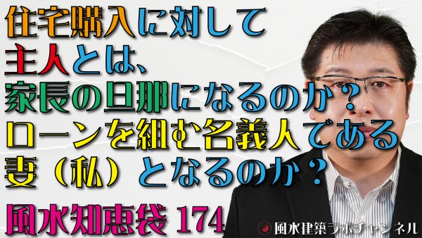 ★質問1:住宅購入に対して主人とは、家長の旦那になるのか?ローンを組む名義人である妻(私)となるのか?